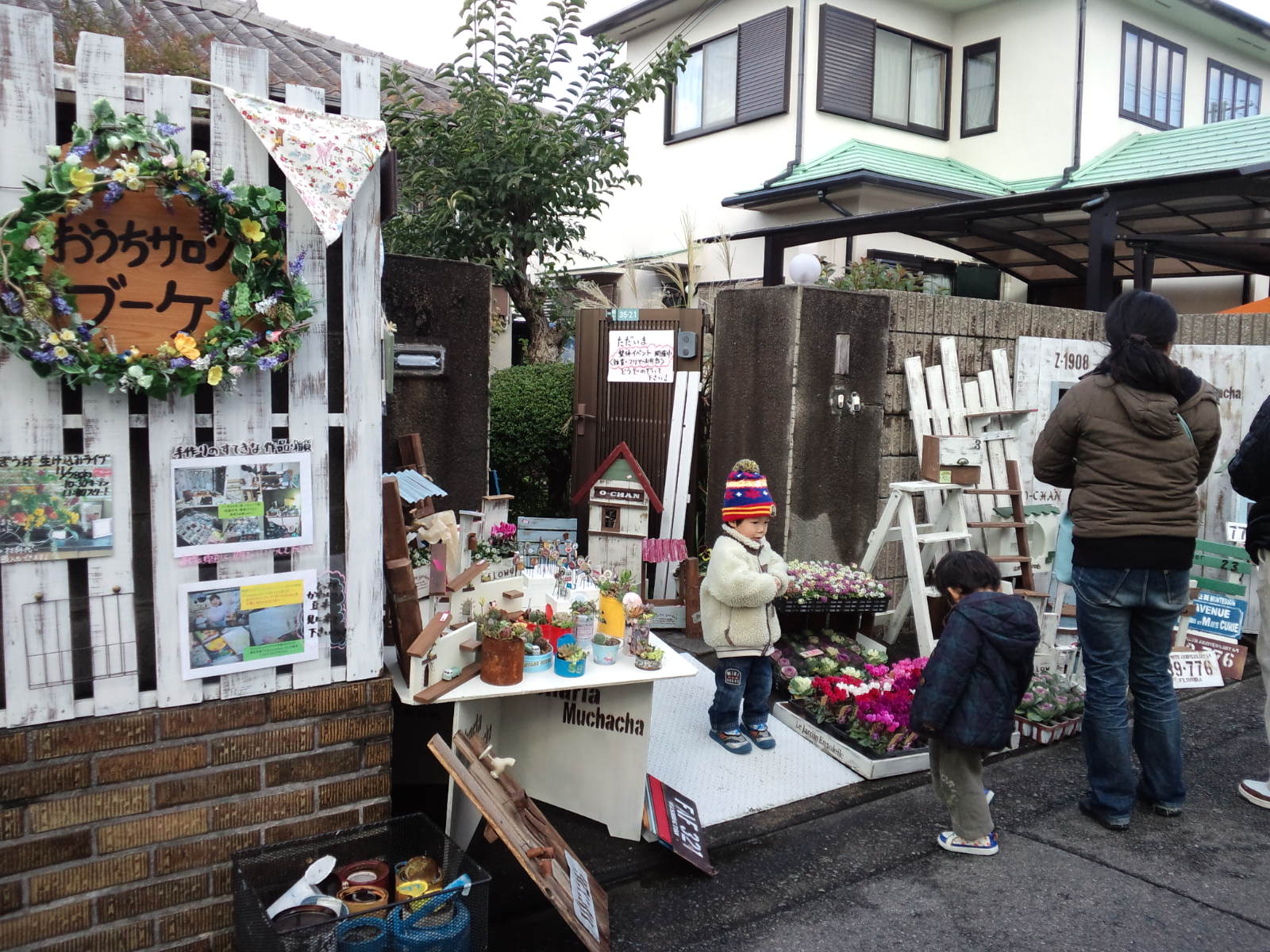 ちょっと寒そうですが、お庭でも木工品・クレープ&パンケーキ&クリスマスのスイーツを