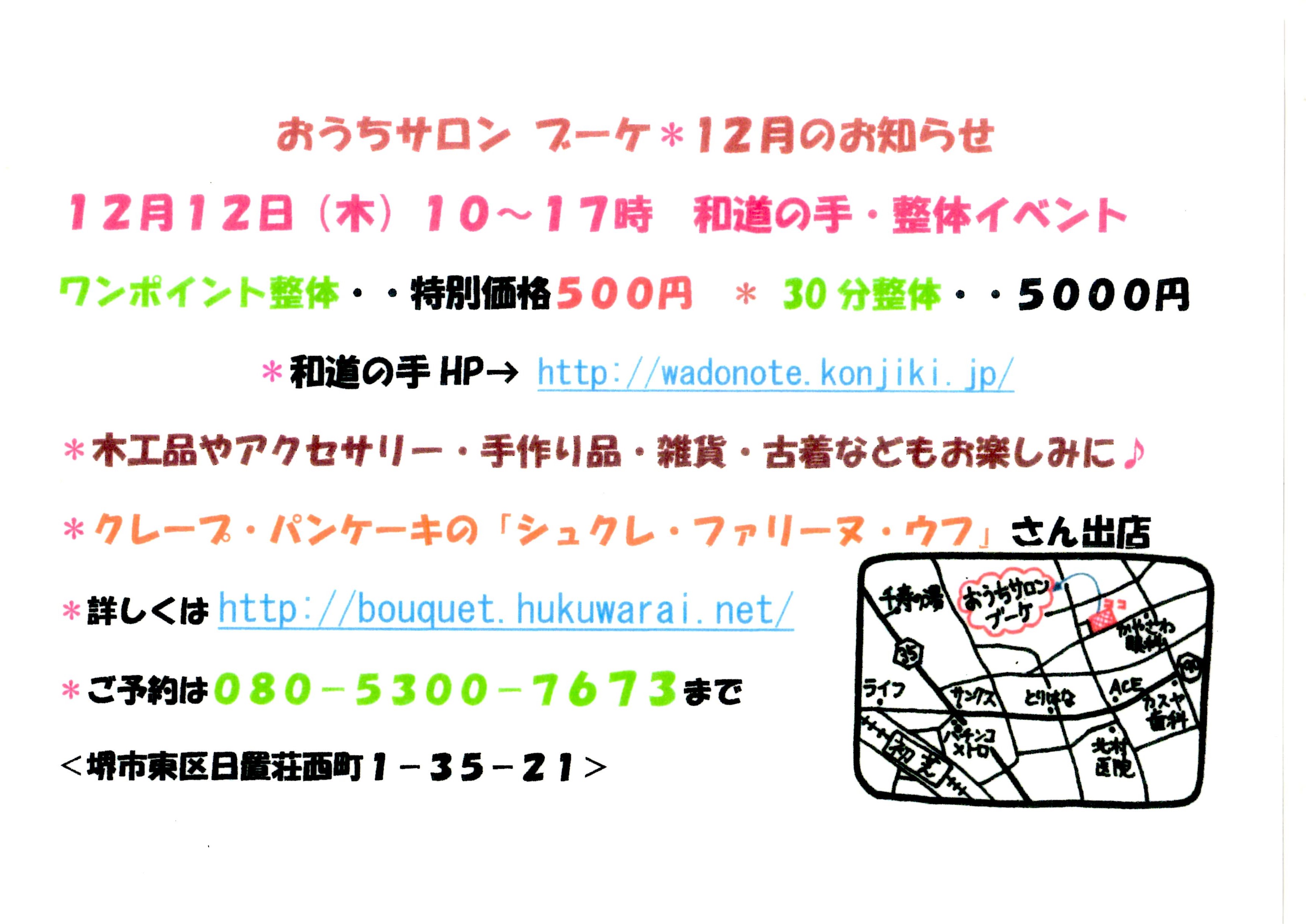 12月12日(木)10~17時に毎月恒例の「和道の手・整体イベント」を開催!